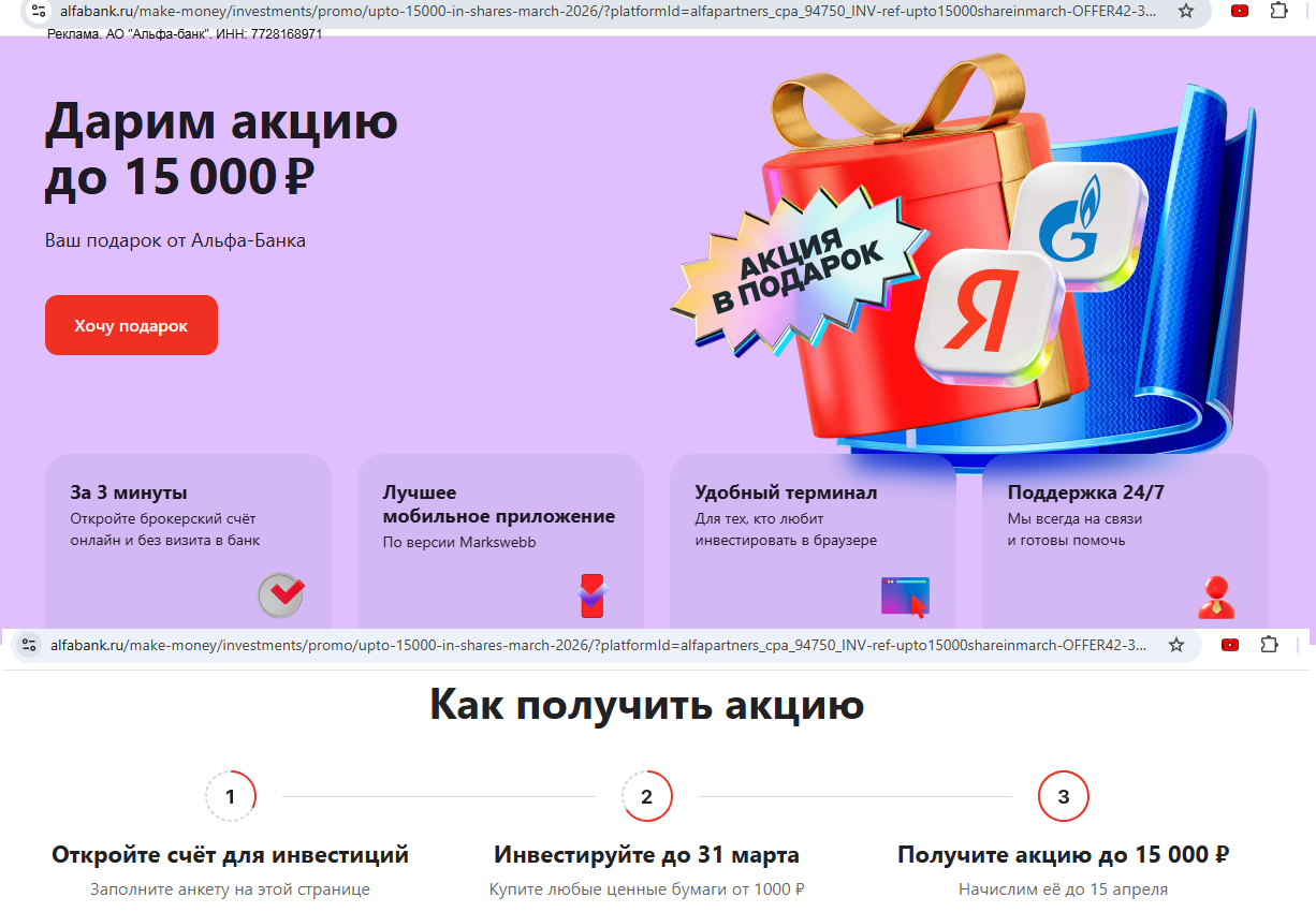 Добрый день, спасибо Вам, что собираетесь открыть Премиум Альфы по моей ссылке!