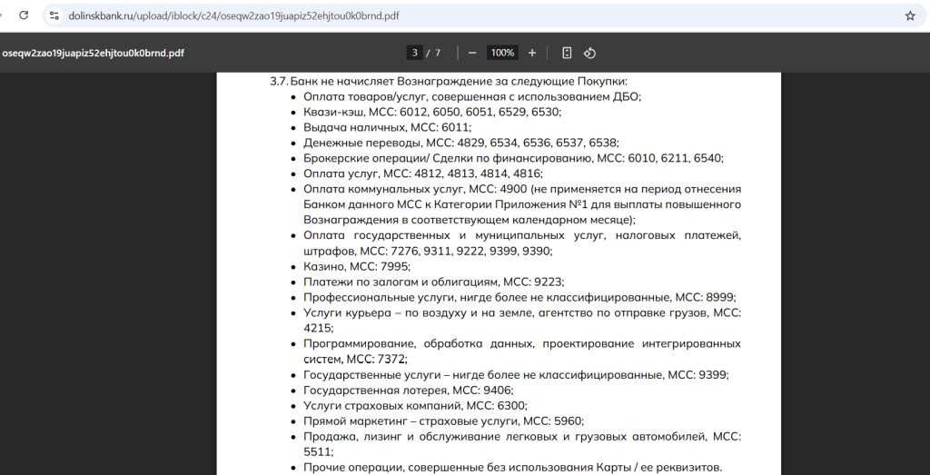 Список исключений вполне стандартный (все интересные МСС-коды в нём присутствуют, за оплату по СБП кэшбэка нет):