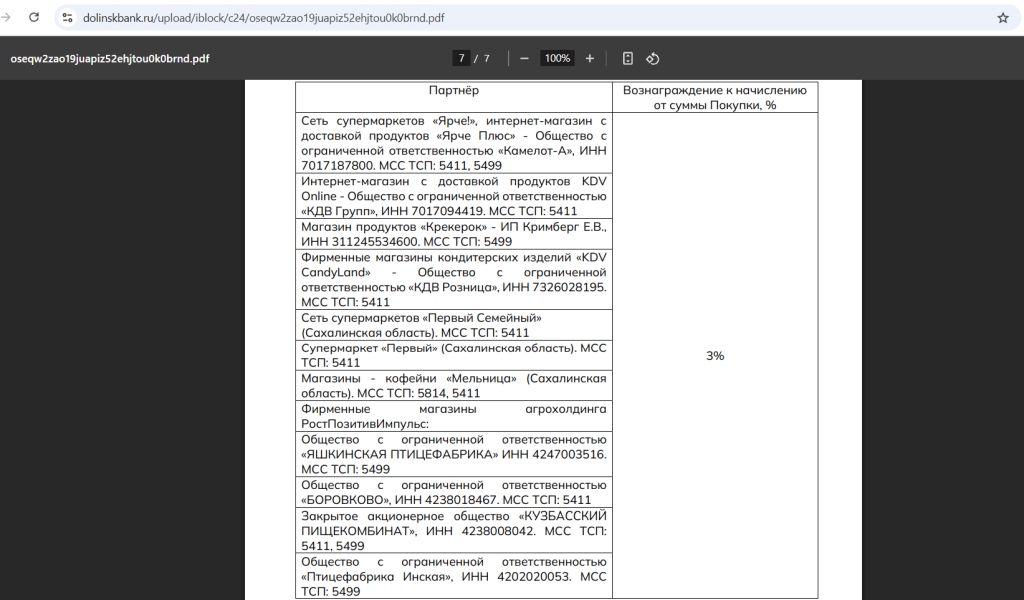 – 3% у партнёров (в основном, в местных сахалинских магазинах, а также в супермаркетах «Ярче!»).