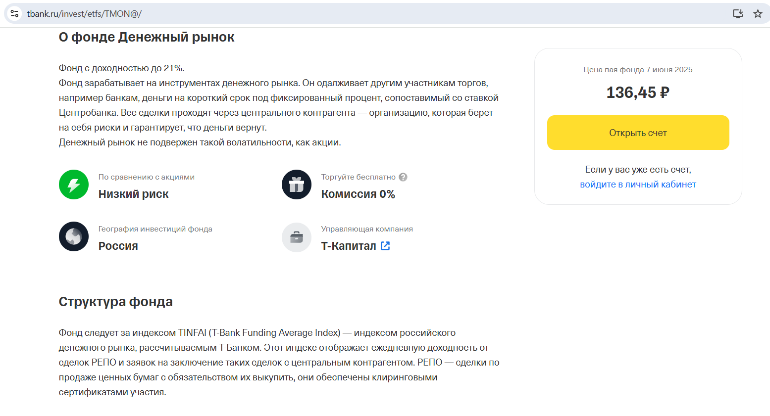 «Т-Капитал» оказался более оригинальным, там придумали свой индекс TINFAI, который отображает ежедневную доходность от сделок РЕПО и заявок на них на заключение таких сделок с центральным контрагентом. Но суть та же.