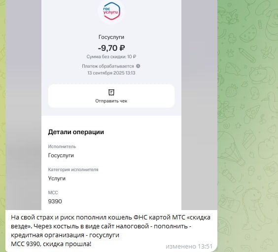 – По карте «Скидка везде» от «МТС Банка» в тарифах МСС 9390 не находится в исключениях. А в «Условиях получения и использования расчётных банковских карт для клиентов» имеется в исключениях.