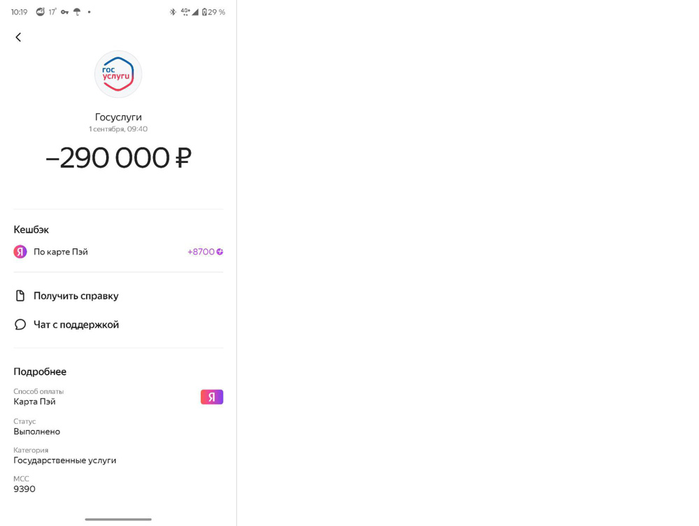 МСС 9390 (оплата налогов из кабинета налогоплательщика через Госуслуги) нет в списке исключений, так что за налоги по этой карте можно получать кэшбэк 3%. Нужна активная подписка «Яндекс Плюс».