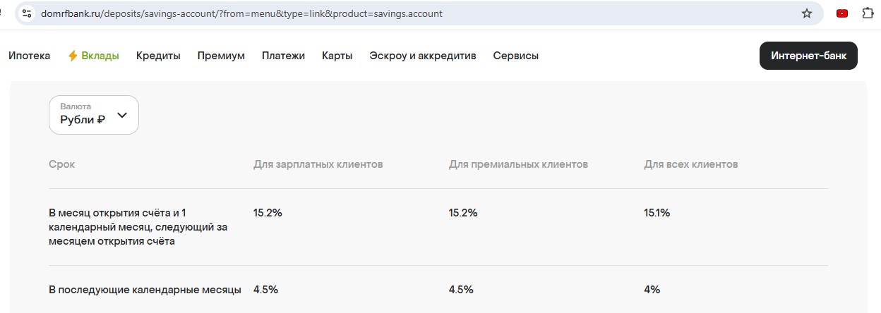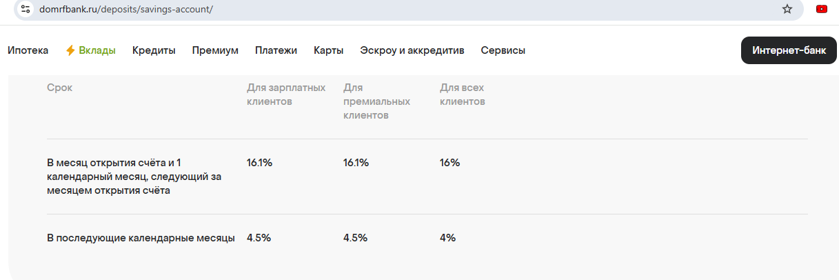 Накопительный счёт банка «ДОМ.РФ» очень хорош, думаю, не помешает любому клиенту в арсенале, т.к. ставка там фиксируется на первые 2 месяца по каждому открываемому счёту. При этом доходность обычно предлагается выше среднерыночной.