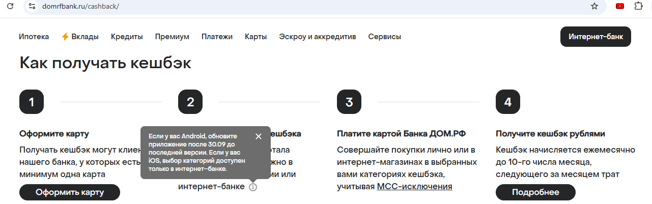Оплата по QR-коду в банке ДОМ.РФ не считается.