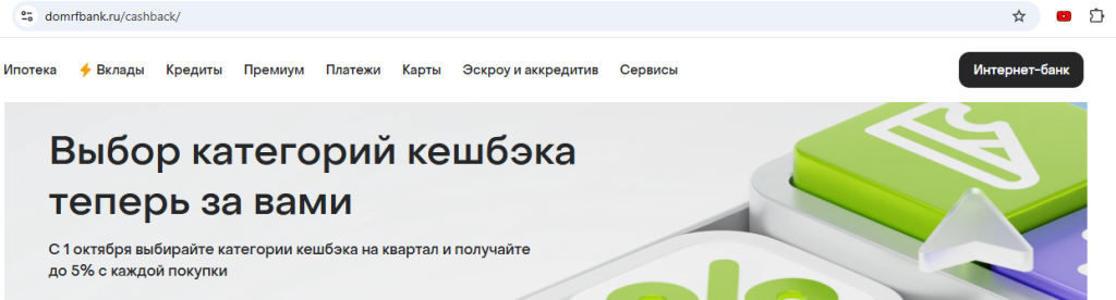 На базе данной кредитной организации планируется создать универсальный ипотечно-строительный банк. Поэтому вполне логично, что банк «ДОМ.РФ» решил выпустить карту с повышенным кэшбэком в категории «Дом и ремонт». Оригинального названия для своего нового продукта банк не придумал, в тарифах он называется просто «Карта». Вот как выглядит реклама на сайте банка: