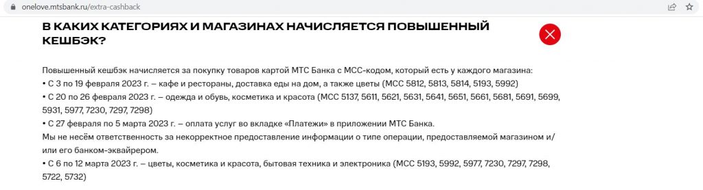 Дело в том, что в новом тарифе (см. первую ссылку в моем посте выше) есть ссылка на исключения (вторая ссылка в посте выше), и хотя название, похоже, правильное — …card-weekend.., — по ней открывается перечень исключений для карты МТС Банк-Магнит, а разница критичная, ибо в перечне исключений по второй ссылке в посте выше присутствуют 4812 и 4900, которые, если я правильно понимаю из статьи, раньше бонусировались и считались в обороте.