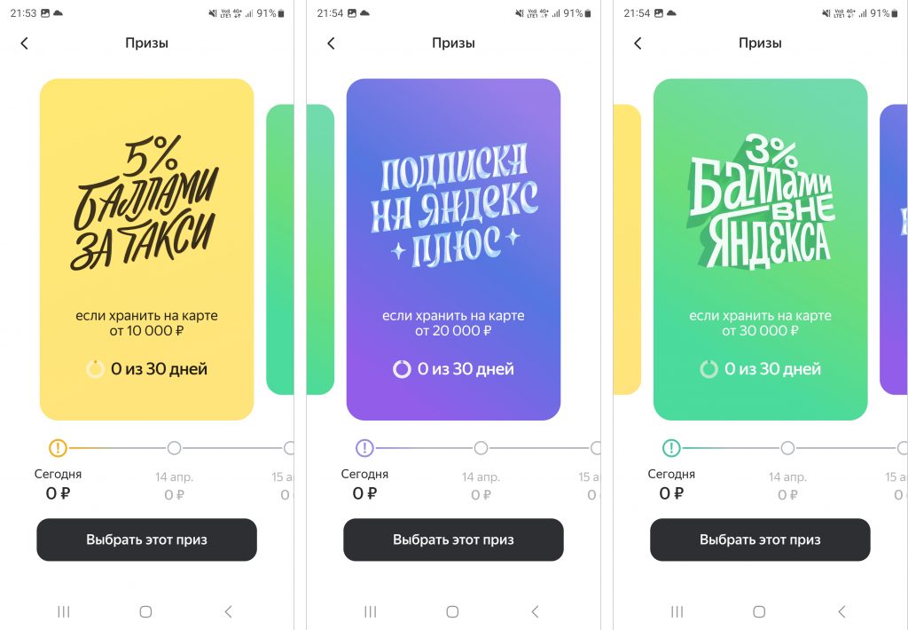 В мобильном приложении «Карты Плюса» от Яндекса появилось предложение поддерживать минимальный остаток на карте за призы на выбор (нужно выбрать подходящий приз и выполнять соответствующее условие. Можно выбрать несколько, но тогда и остаток нужно поддерживать для каждой опции). За поддержание требуемого остатка в течение 30 дней можно будет подключить опцию, которая также будет действовать 30 дней.