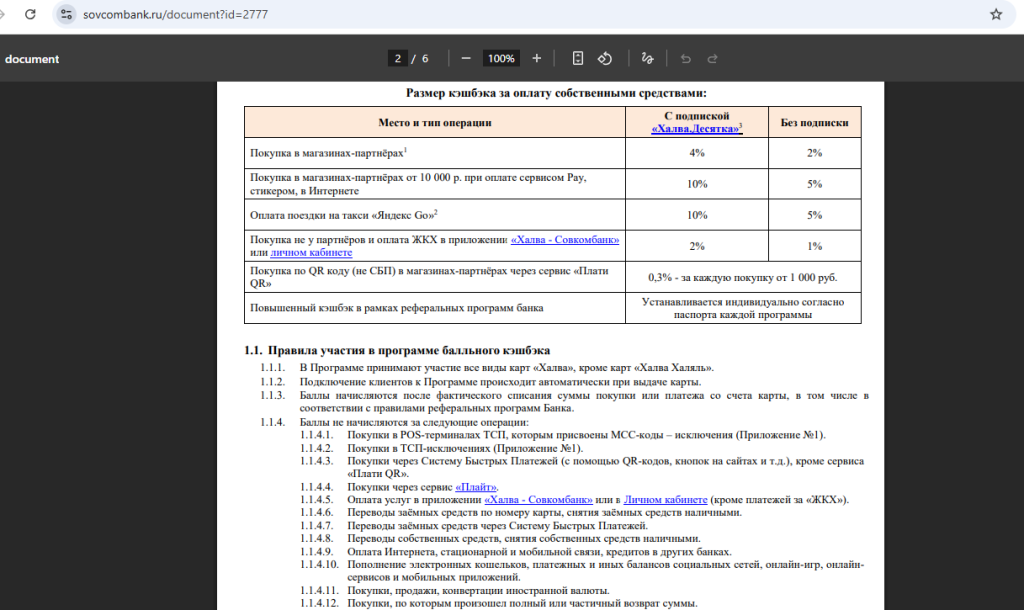 4 Кэшбэк до 6%.