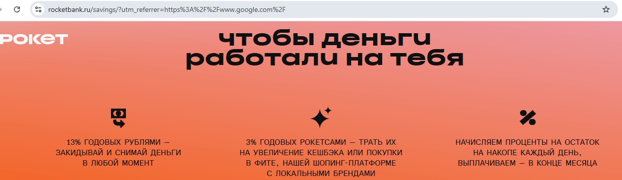 – 3% рокетсами начисляется на ежедневный остаток по накопительному счёту (помимо основной ставки в 13% годовых деньгами);