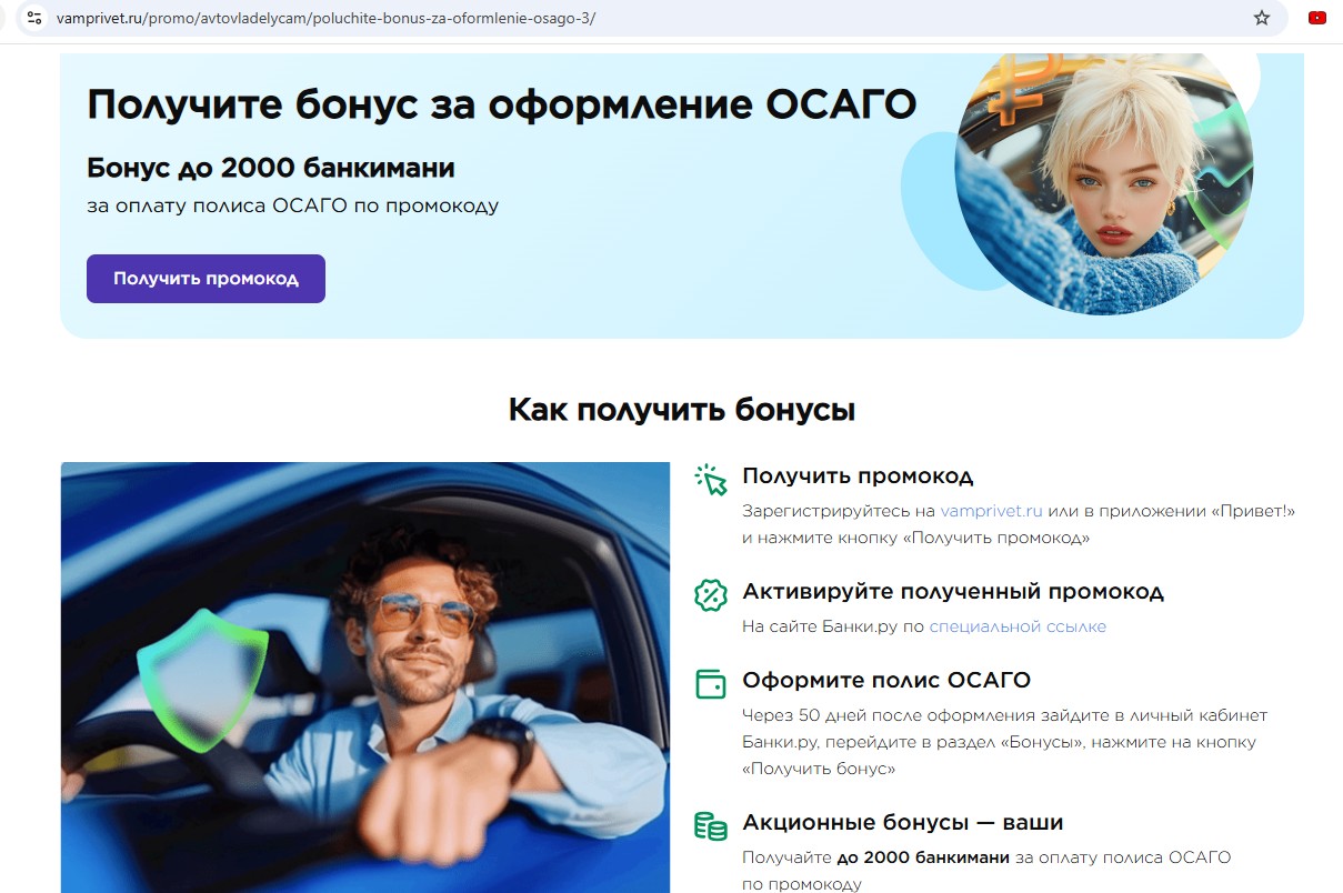 7 Акции с бонусами за ОСАГО от «Вампривет.ру» и «Банки.ру».