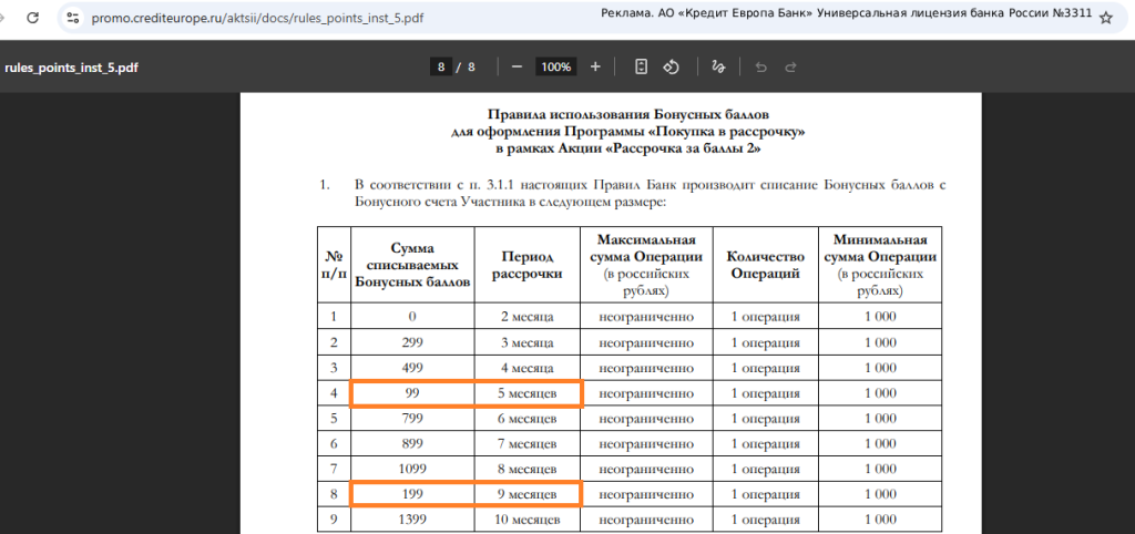 За 299 баллов можно подключить рассрочку на 3 месяца;