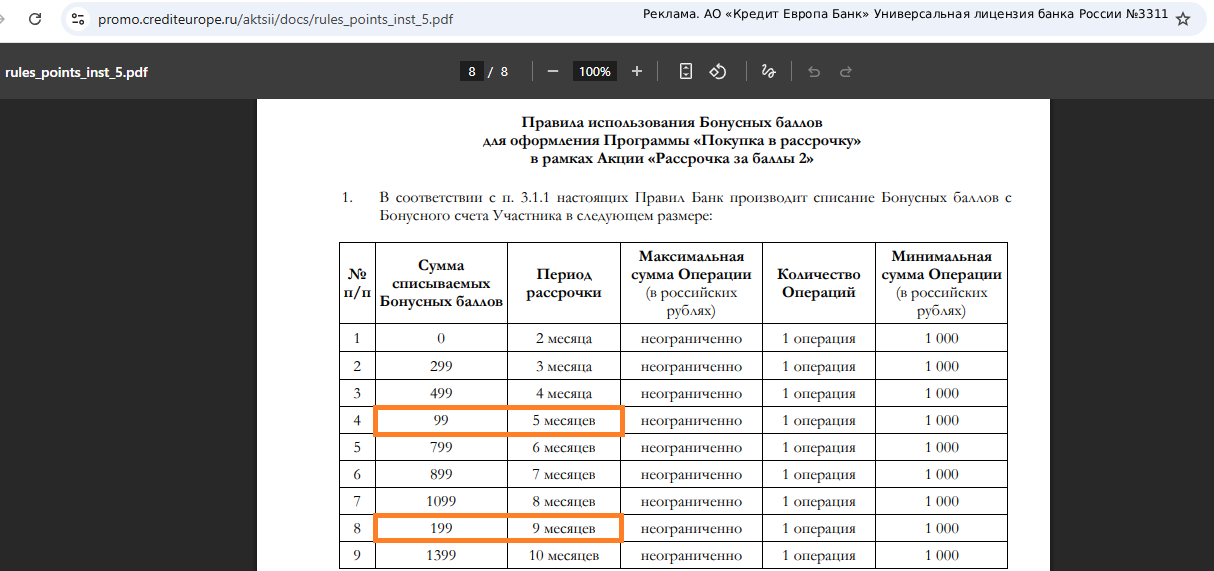 Рассрочка за баллы по кредиткам «Кредит Европа Банка». Снижение стоимости рассрочки (с 15.10.25) и продление срока действия акции.