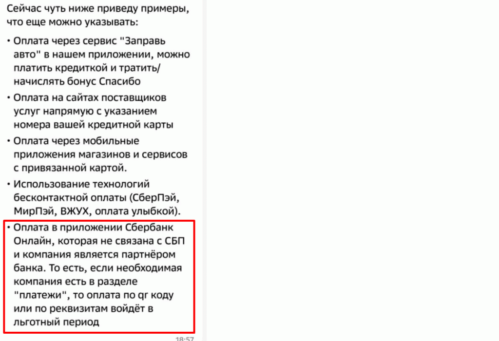 В категориях много сносок, т.к. экосистемы Яндекса и Сбера имеют одни МСС на все свои сервисы (МСС 3990, 3991) и отношение покупки к конкретной категории производится согласно её характеру, а не просто по МСС-коду.