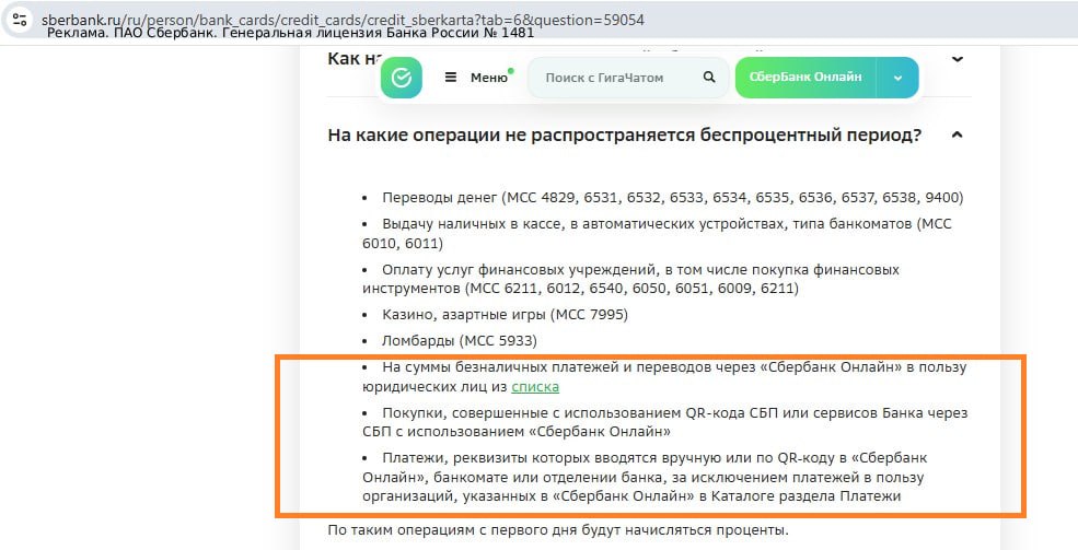 Есть же список MCC на сайте Сбера, по которым не работает льготный период. Искомого MCC там нет.