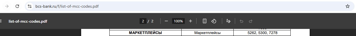 – Дебетовая карта «ВТБ» — МСС маркетплейсов: 5262, 5300, 7278.