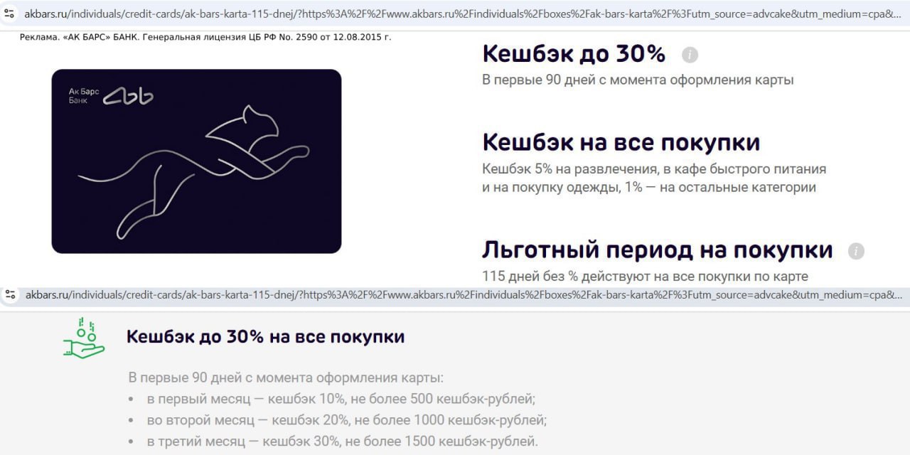 Раньше у «Универсальной карты» от «АТБ» грейс 120-180 дней был обыденностью, да и бесплатная обналичка заёмных средств в банкоматах без последствий имелась. Сейчас грейс у карты может быть и меньше 120 дней (определяется индивидуально), а снятие наличных будет с комиссией (кроме 30 000 руб. в первые 30 дней с момента получения карты). Кэшбэк остался, но видоизменился: