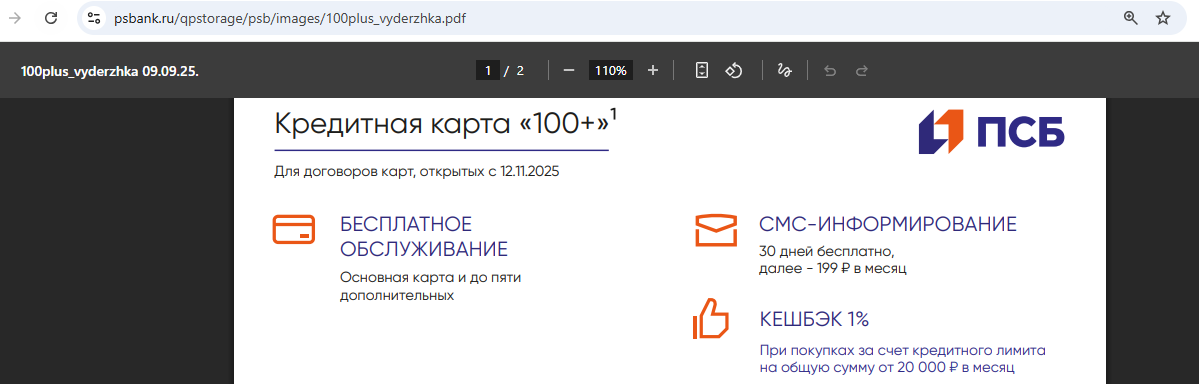 3 Кредитная карта «180 дней без %» от «ПСБ».