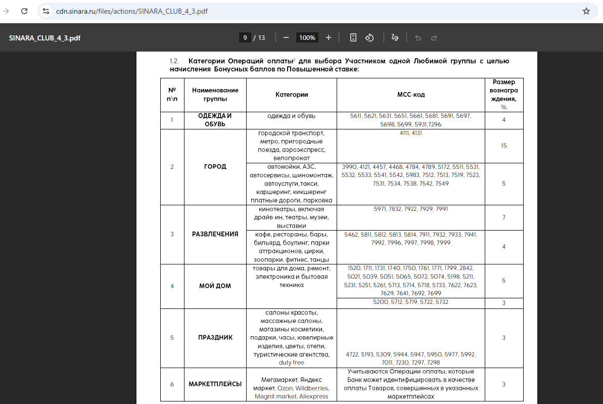 – 5% за магазины одежды (MCC 5137, 5611, 5621, 5631, 5641, 5651, 5681, 5691, 5699, 5931);