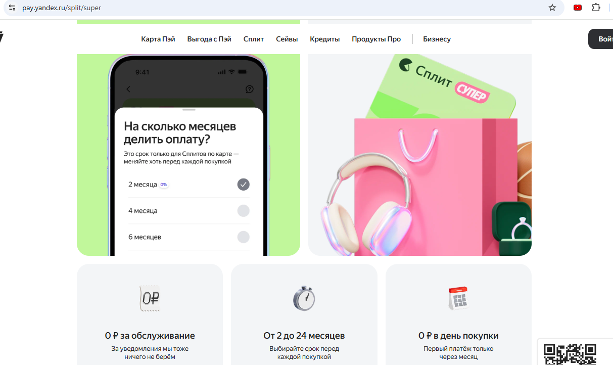 У бесплатной кредитной карты «Супер Сплит» («Улучшенный Сплит») от «Яндекс Банка» на первый взгляд ничего интересного нет: кэшбэк отсутствует, а бесплатная рассрочка на покупки у непартнёров составляет всего 2 месяца.