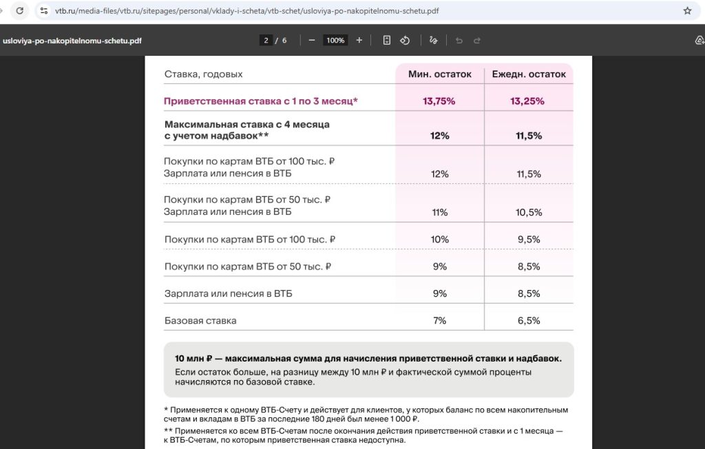 Клиентам, у которых в банке на счетах хранится от 50 000 руб., «ВТБ» обещает предлагать специальные категории и ставки: