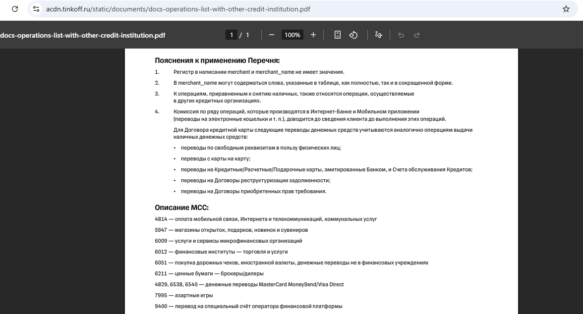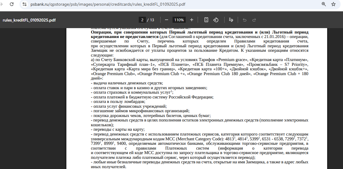 Причём если раньше это был только список МСС-кодов при оплате непосредственно картой оффлайн или по номеру карты онлайн, то с появлением СБП появился ещё отдельный список негрейсовых платежей по СБП, частенько с конкретным наименованием торговых точек.