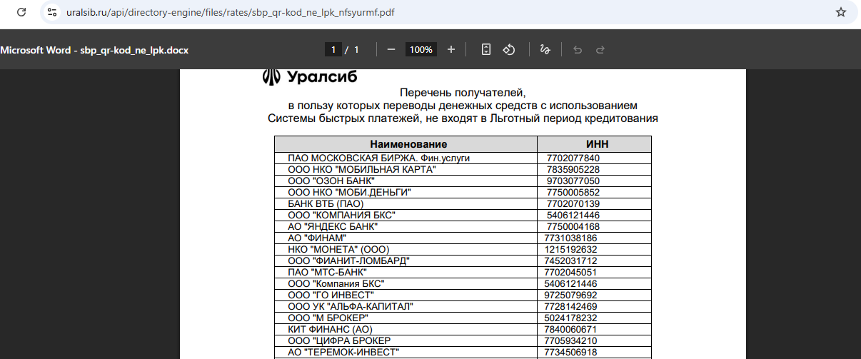 А здесь находится перечень операций, на которые не действует льготный период при оплате через СБП (по QR-коду):