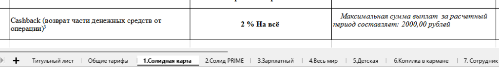Бонусная программа по «Солидной карте» на удивление проста: за все покупки предусмотрен кэшбэк 3%, максимум 3000 руб./мес. Выплачивается не позднее 10 рабочего дня следующего месяца. Невыгодного округления кэшбэка нет: