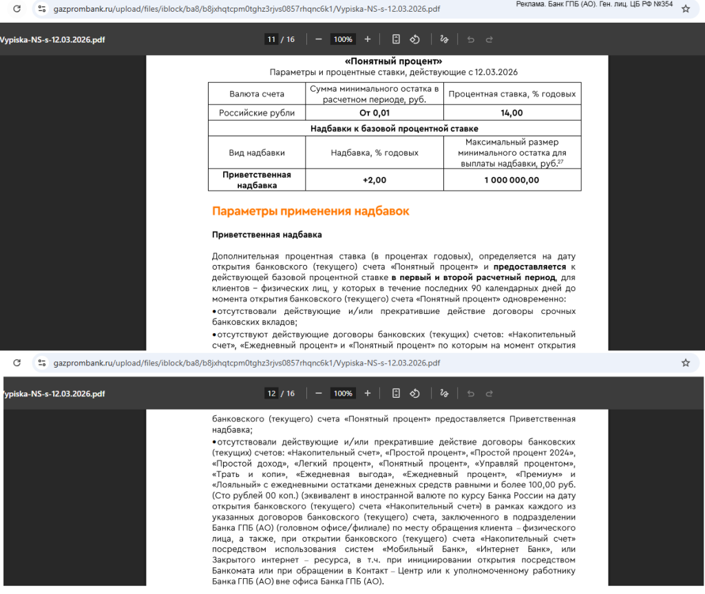 С 12.03.26 у новичков появится ещё приветственная надбавка в 2% годовых для суммы до 1 млн руб. в первые 2 мес. Т.е. получится 14%+2%=16% годовых.