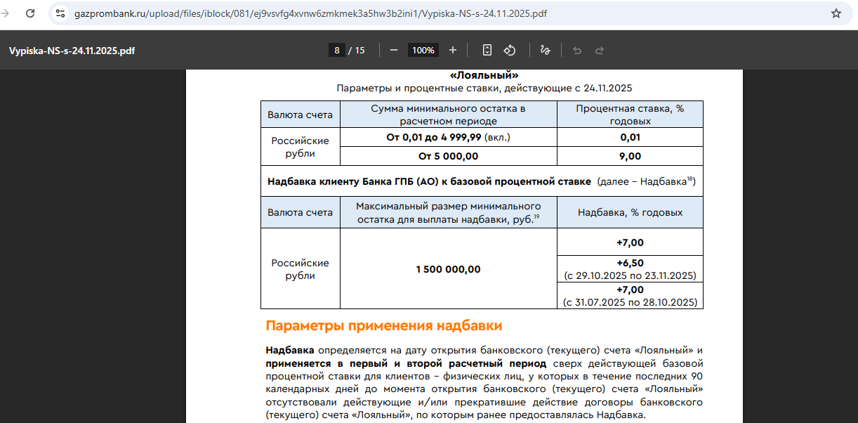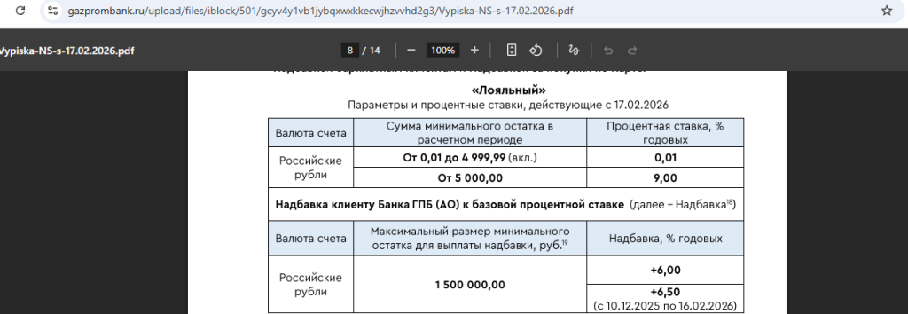 Ещё у «Газпромбанка» есть накопительный счёт «Премиум», где с 31.10.25 можно получить 16% годовых: