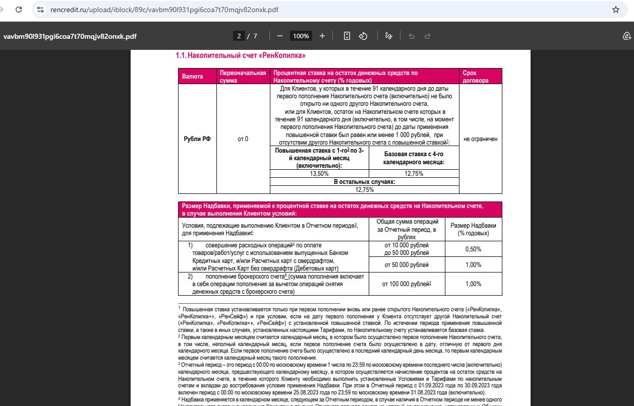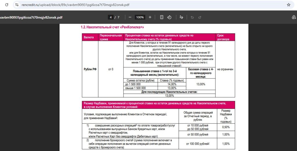• “РенКопилка” от “Ренессанс Банка” — 13,5% годовых (с 31.03) на любой остаток в первые 3 месяца новичкам (потом 12,75% годовых). При тратах по картам в прошлом месяце от 10 000 руб. дадут +0,5% к ставке, при тратах от 50 000 руб. или при пополнении брокерского счёта от 100 000 руб. будет +1% к ставке.