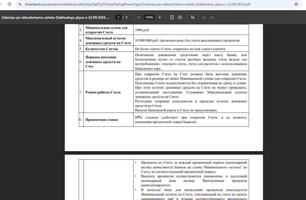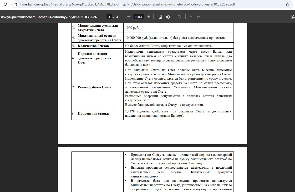 39 Накопительный счёт «Доходный Плюс» в «Тимер Банке»