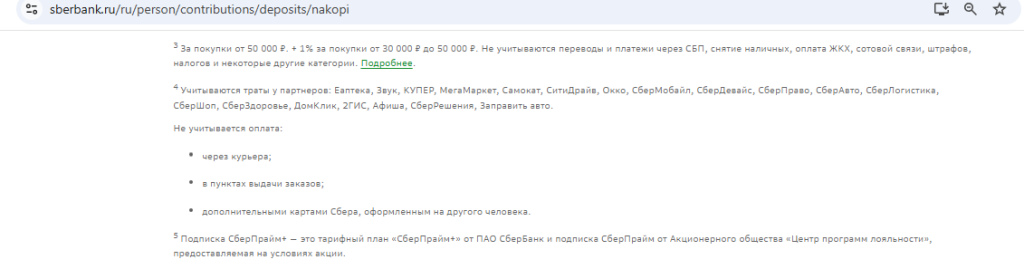 Список исключений для кэшбэка по карте: МСС 4812, 4813, 4814, 4815, 4816, 4829, 4899, 5933, 5960-5969, 6010-6012, 6050, 6051, 6211, 6300, 6529-6540, 7273, 7276, 7299, 7311, 7321, 7399, 7800-7802, 7995, 8651, 8661, 8999, 9211, 9222, 9223, 9311, 9399, 9405, 9406, 9754, покупки через СБП.