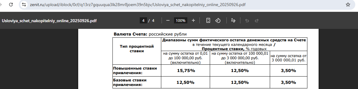 • “Накопительный онлайн” от “Банка Зенит” — 15,75% годовых (с 26.09) всем на остаток до 100 000 руб.