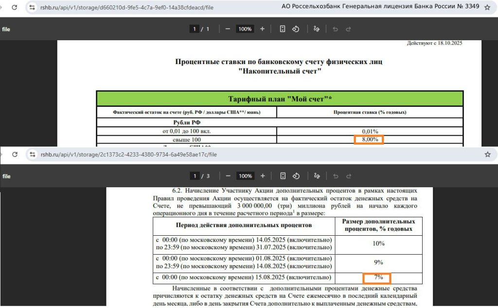 • Накопительный счет “Ультра” от “РСХБ” — 18,5% годовых (с 18.10) в первые 3 месяца на остаток от 100 руб. до 10 млн руб.