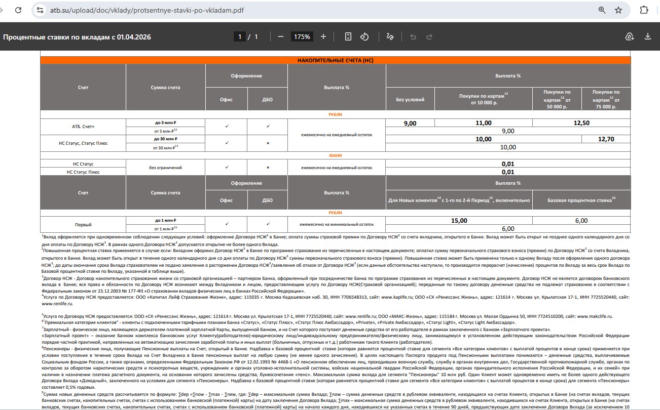 • “Первый” от “АТБ” — 15% годовых (01.03) на минимальный остаток до 1 млн руб. в первые 2 месяца.