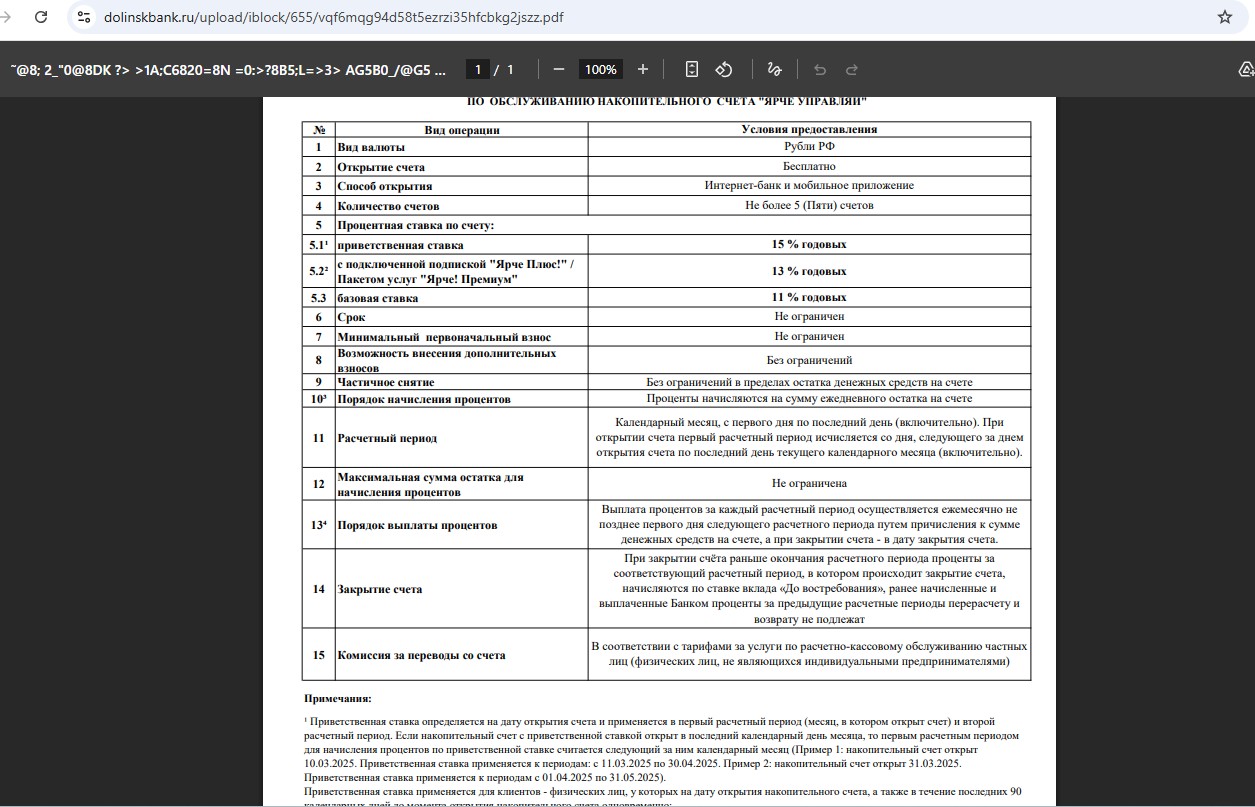 • Накопительный счёт “Ярче управляй” от банка “Долинск” — 15% годовых (с 24.02) новичкам в первые 2 месяца на ежедневный остаток до 1 млн руб., (с подпиской за 249 руб./мес. 13% годовых на любой ежедневный остаток).