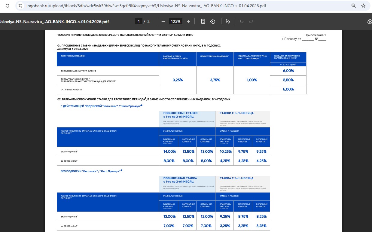 • +1% годовых будет за подписку «Инго Плюс» (стоит 450 руб./мес., первые 30 дней за 1 руб.).