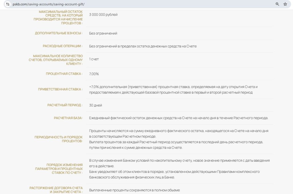 • “Подарок” от “Примсоцбанка” — 14% годовых (с 25.03) на ежедневный остаток до 3 млн руб. новичкам в первые 2 расчётных периода (у “Социального” — 14,5% новичкам при получении пенсии на карту банка).